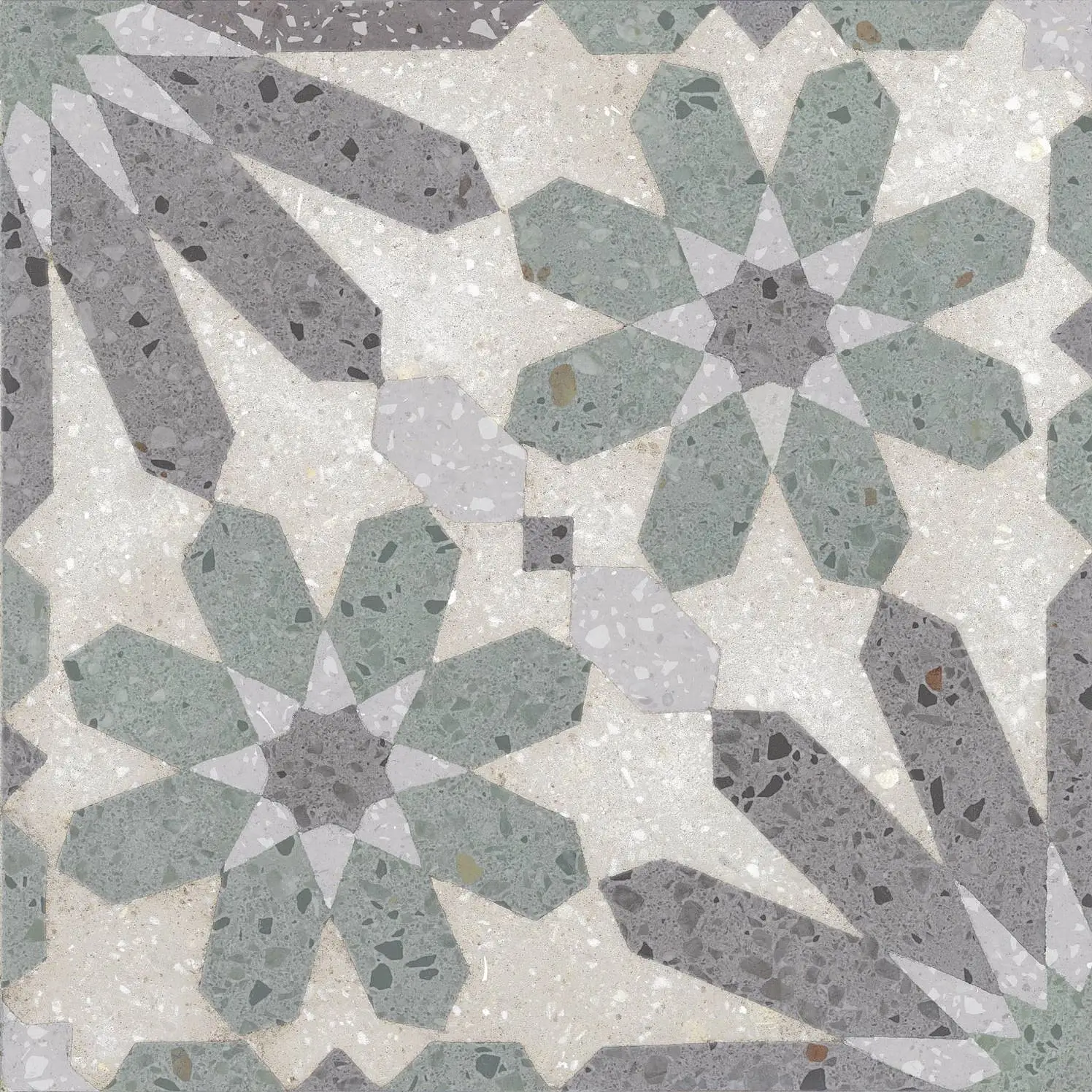 Terrazzo effect, faux encaustic tiles